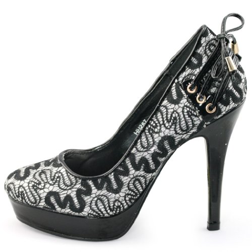 Shoezy Womens Black Lace Glitter High Heels Platform Pumps Evening Party Shoes