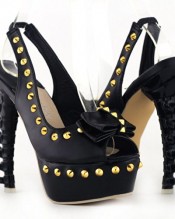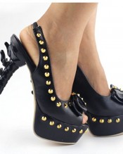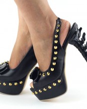Be bold in this unique platform studded pump. Dress them up or dress them down they will always be in season. Features bone high heel design, gold studs and bow, open peep toe, and cushioned insole for walking comfort. With a bone heel you will be the center of attention!