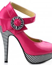Show Story Hot Pink Flower Ankle Strap Stripe Stiletto High Heel Platform Pumps,LF30404HP39,6UK,Hot Pink