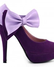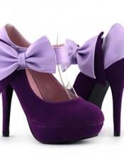Show Story Purple Bow Ankle Strap Stiletto Platform Pumps,LF30412PP39,6UK,Purple