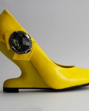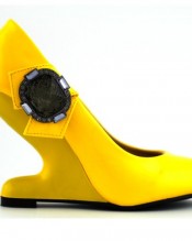 Show Story Yellow Rhinestones Curved Heel Less High Heels Wedge Pumps,LF30205YL37,3UK,Yellow
