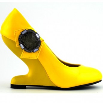 Show Story Yellow Rhinestones Curved Heel Less High Heels Wedge Pumps,LF30205YL37,3UK,Yellow