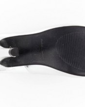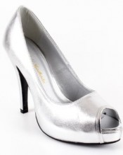 Silver peeptoe in silver faux leather with interior front platform and thin heel. UK 10,5 EU 45