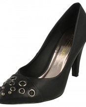 Spot On High Heel Pointed Toe Court Eyelet Vamp (Black, Size 5 UK)
