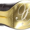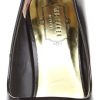 Luxe court shoe from Ted Baker made from a high shine black leather with elegant gold metal tip. The slip on has a pointed toe and angled gold stiletto heel with a height of approximately 10cm / 4 inches.