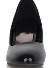 Three’s Womens Fashion Shoes Patent Leather Chunky Heels Mid Heel Pumps Work Pointed Toe Heels (10, black)