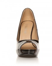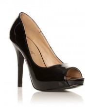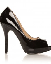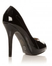 TIA Black Patent PU Leather Stiletto Very High Heel Platform Peep Toe Shoes Size UK 5 EU 38