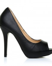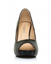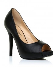 TIA Black PU Leather Stiletto High Heel Platform Peep Toe Shoes Size UK 4 EU 37