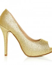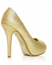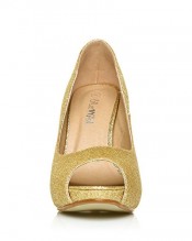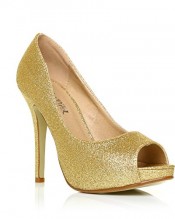TIA Gold Glitter Stiletto High Heel Platform Peep Toe Shoes Size UK 5 EU 38
