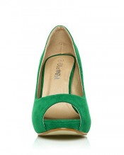 TIA Green Faux Suede Stiletto High Heel Platform Peep Toe Shoes Size UK 6 EU 39