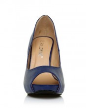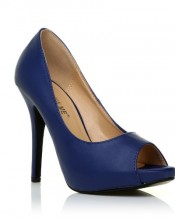 TIA Navy PU Leather Stiletto High Heel Platform Peep Toe Shoes Size UK 8 EU 41