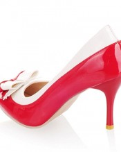 VonFon Women Space PU Leather Pointed Toe Stiletto Heel Bowknot Dating Single Pumps