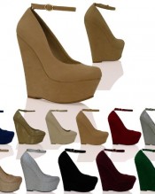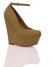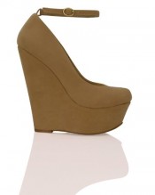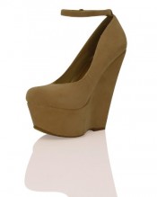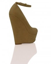 W8A Womens Ladies High Heel Wedges Platform Mary Jane Style Full Toe Court Shoes Beiges Nude Faux Suede Size 7 UK