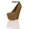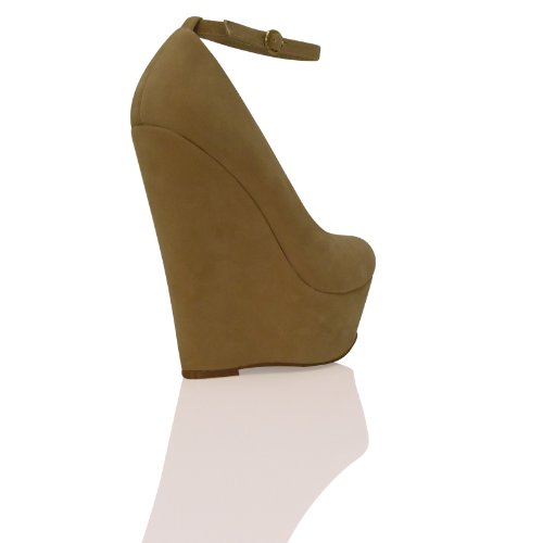 W8A Womens Ladies High Heel Wedges Platform Mary Jane Style Full Toe Court Shoes Beiges Nude Faux Suede Size 7 UK