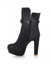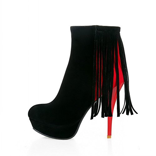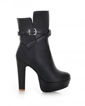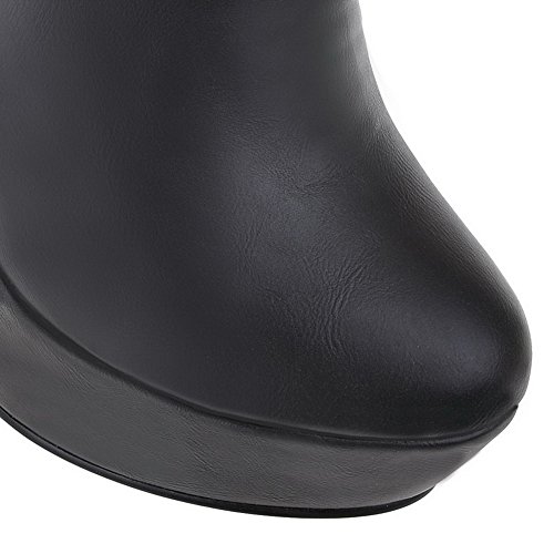 WeenFashion Womens Closed Round Toe High Heel Platform Chunky Heels PU Short Plush Solid Boots, Black, 2 UK