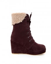 WeenFashion Womens Round Closed Toe High Heels PU Short Plush Solid Boots with Bandage Wedge Platform, Brown, 5 UK