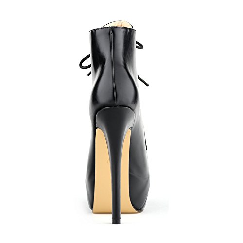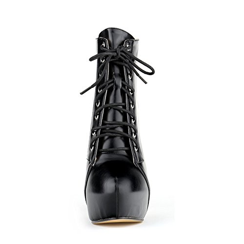 Women Ladies Hot Fashion High Heels Lace Up Boots Ankle Shoes Smart Office Work Court Shoes Pu Leather Shoes In 3 Colors 6 Sizes (Asia 40: UK6, Black)