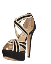 Women’s Fashion High Heel Platform Gold Trim Strappy Cross Over Peep Toe Sandal Party Black 5