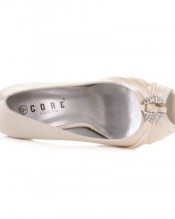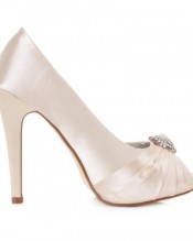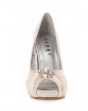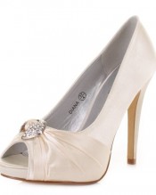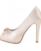 Key Features:Beautiful satin court shoes with diamante gem embellishment and peep toe. White, Champagne Ivory or Silver satin finish
