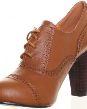 Womens Lace Up Brouge Shoes Ladies Medium Heel Round Toe