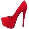 WOMENS LADIES HIGH HEELS PLATFORM POINTED PARTY CLASSIC COURT SHOES PUMPS SIZE (UK 6 / EU 39 / US 8, Red Suede)