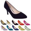 WOMENS LADIES LOW MID HIGH KITTEN HEEL PUMPS POINTED TOE WORK COURT SHOES SIZE (UK 6 / EU 39 / US 8, Black Suede)