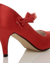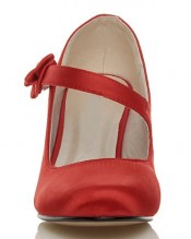 WOMENS LADIES MID HIGH HEEL STRAP BOW WEDDING BRIDAL EVENING SHOES SIZE 5 38