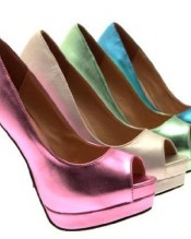 Sexy platform peeptoes in various mettalic colours with matching bags.