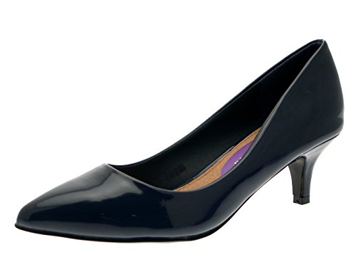 Womens Pointed Toe Court Stiletto Kitten Heels Navy Patent Shoes Size 6