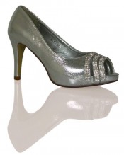 Y2C Womens Ladies Mid High Heel Wedding Bridal Stiletto Diamante Party Shoe Size SILVER SHOES Size 5 UK