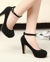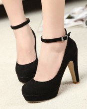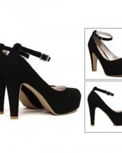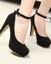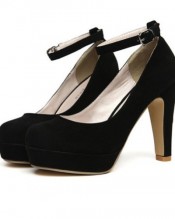 Zehui Womens High Heel Platform Stiletto Ankle Strap Buckle Pumps Faux Suede Shoes Black UK 2