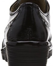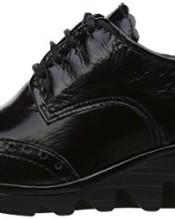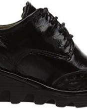 A great new Causal fashion lace up black patent brogue detail leather court shoe wedge. Fly London Palt has the classic rubber Fly London 6cm wedge and a patterned leather lining. This 4 eyelet skinny lace up brogue is smart and perfect teamed with a straight leg trouser suit or teamed with tights to match your smart outfit. All Fly London shoes are in the UK warehouse ready to ship to you today!