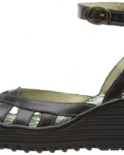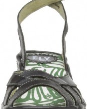 Fly London Yuma sandals are available in eye-catching peacock or modest black patent.