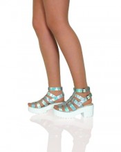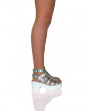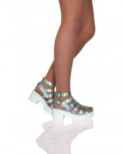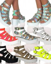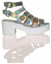 H1E Womens Ladies Block Heel Strappy Buckle Gladiator Summer Sandals Shoes Size Silver Hologram Size 6 UK