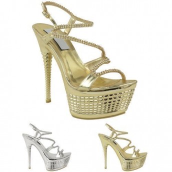 LADIES WOMENS HIGH HEELS STRAPPY PARTY PROM STILETTO SANDAL PLATFORMS SHOES SIZE (UK 3 / EU 36 / US 5, Gold / Diamante)