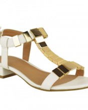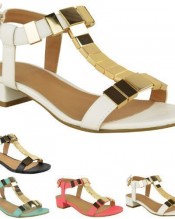 LADIES WOMENS SUMMER SANDALS FLAT MID LOW BLOCK HEEL GLADIATOR BEACH SHOES SIZE (UK 7, White Faux Leather)