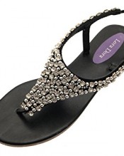 Lora Dora Womens Diamante Thong Sandals Summer Beach Flip Flops Toe Posts Ladies Party Holiday Black Size UK 5
