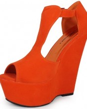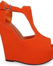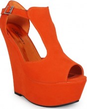 NEW WOMENS LADIES ORANGE FAUX SUEDE PLATFORM PEEPTOE HIGH WEDGE SHOES BOOTS 4