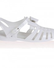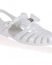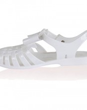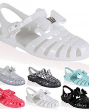 RETRO JELLY SANDALS LADIES WOMENS GIRLS SUMMER BEACH FLAT FLIP FLOPS SHOES SIZE (UK 5, White Rubber / Silver Diamante Bow)
