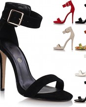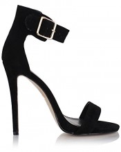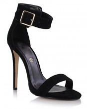 Sole Affair SIREN Ladies Womens Stiletto High Heel Ankle Strap Peep Toe Barely There Sandals Shoes Size UK 5, EU 38 Black Faux Suede
