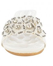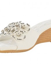 Women’s Fashion Low Wedge Heel Diamate Jewel Flower Peep Toe Mule Summer Sandal Shoe White 7
