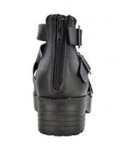 Women’s Fashion Zip Back + Buckle Chunky Heel Strappy Cut Out Platform Gladiator Style Shoe Sandal Black 4