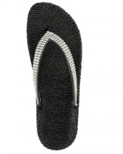 WOMENS LADIES DIAMANTE SUMMER THONG SANDALS LOW HEEL FLAT COMFORT PADDED SIZE (UK 5, Black / Silver Toe Post)