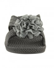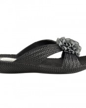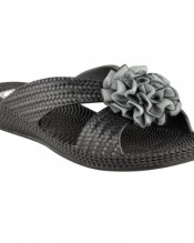 WOMENS LADIES FLOWER MULES FLAT SUMMER SANDALS FLIP FLOPS BEACH JELLY SHOES SIZE (UK 5, Black)