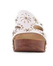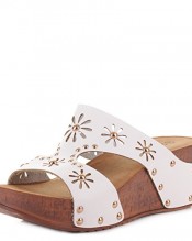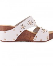 Womens Slip On Mule Low Wedge White comfortable Ladies Studded Sandals Shoe SIZE 6