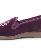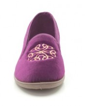 Traditionally styled women’s slippers that feature cosy velvet touch fabric and elastic side panels for easy foot entry. The rubber sole adds grip and an attractive gold emblem is embroidered on the upper for a stylish touch. Fully washable.