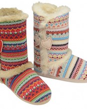 Ladies Famous Dunlop ANNABELLE Nordic Bootee slippers faux fur lining CREAM MULTI, sizes Medium (UK sizes 5 & 6)),