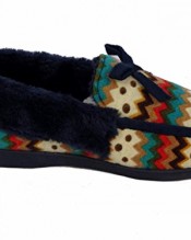 Ladies Famous DUNLOP Fur Collar Moccasin style Slippers BRIDIE warm lining & rubber sole NAVY size 6 UK