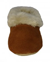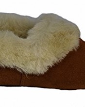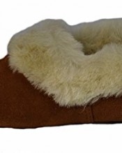 Ladies Genuine Sheepskin Collar Slippers with Soft Sole Brown size 4 UK