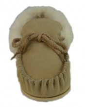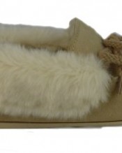 Ladies DUNLOP Sand Suede Moccasin Slippers Fur Lining & Collar,Hardwearing Sole.